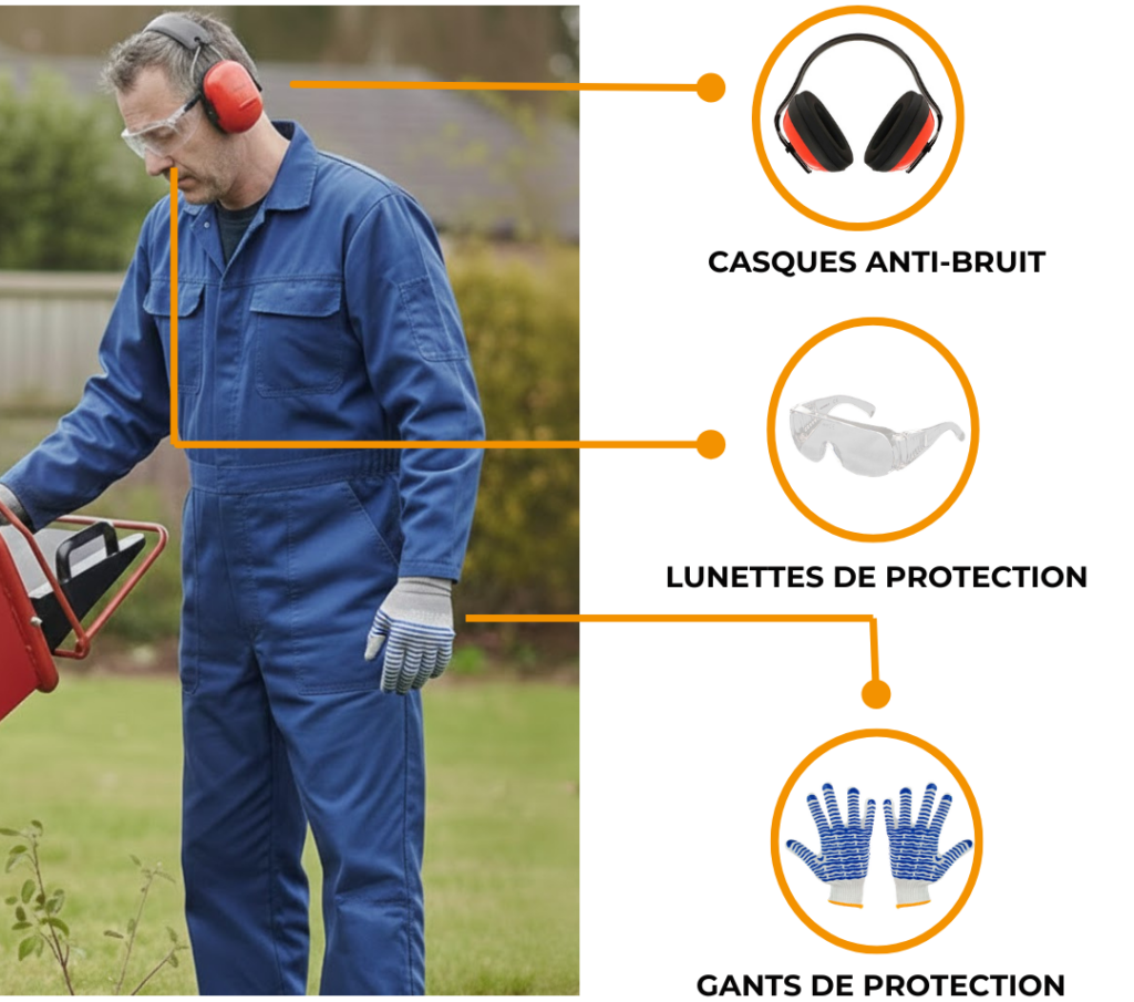 Pour choisir les EPI les plus adaptés et pour les indications spécifiques liées à votre modèle de broyeur de végétaux, référez-vous toujours au manuel du fabricant et aux dispositifs de sécurité de la machine. Un équipement cohérent avec l’utilisation réelle fait partie intégrante d’un usage efficace, sûr et satisfaisant dans le temps.