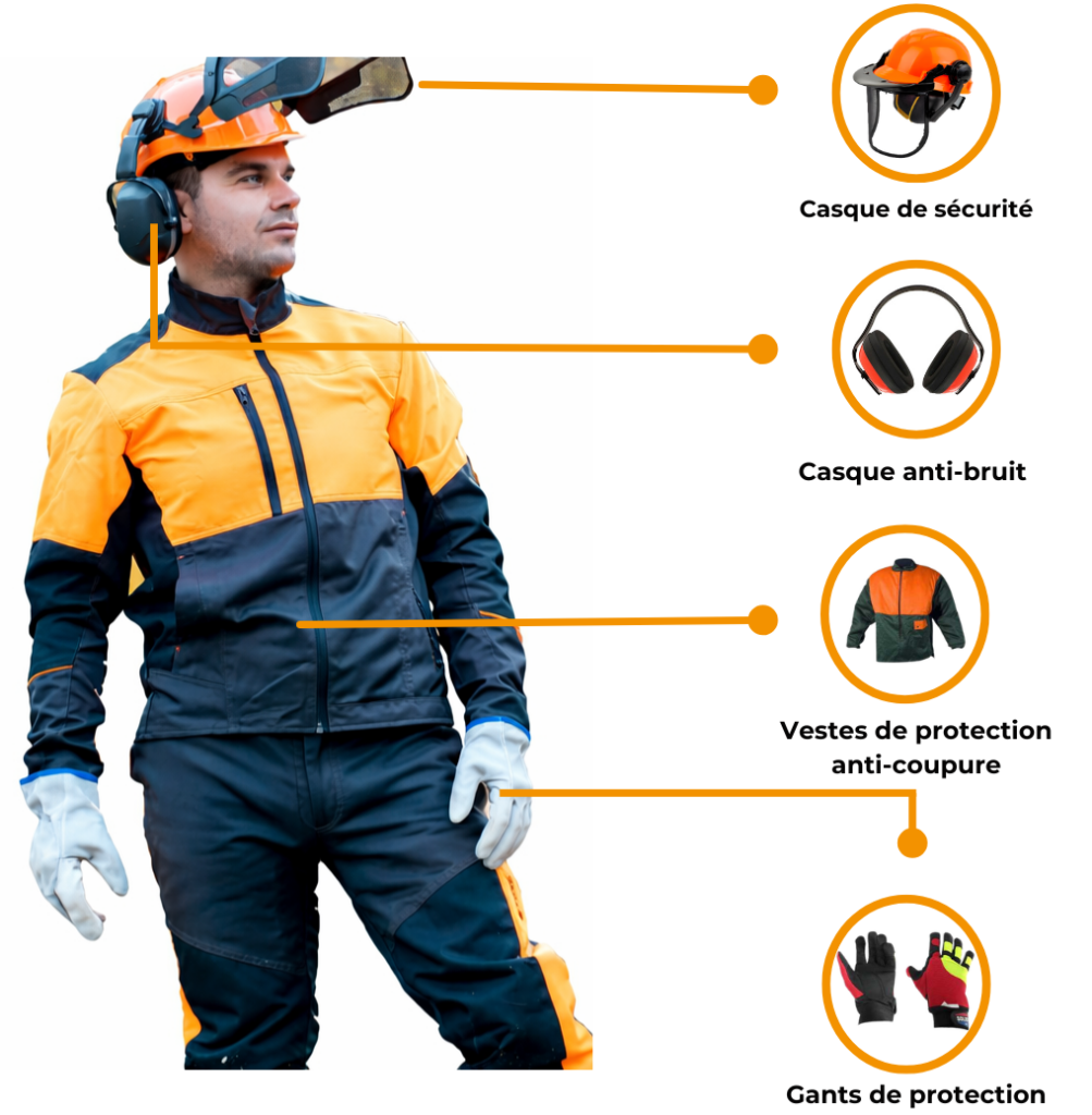 L’utilisation de la tronçonneuse expose à des risques spécifiques : projection de copeaux, bruit élevé, vibrations, possibles rebonds et contact accidentel avec la chaîne. Même dans un cadre privé ou de loisir, il est essentiel d’adopter des équipements de protection adaptés. Les EPI ne servent pas seulement à prévenir les accidents graves : ils aident aussi à travailler avec davantage de stabilité et de concentration :